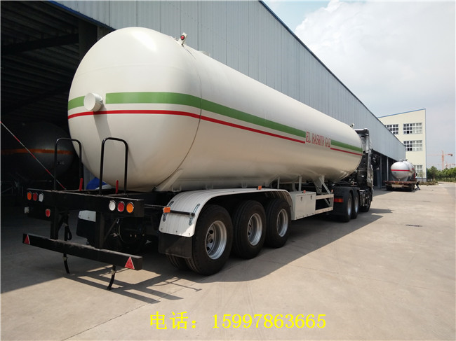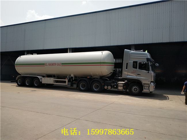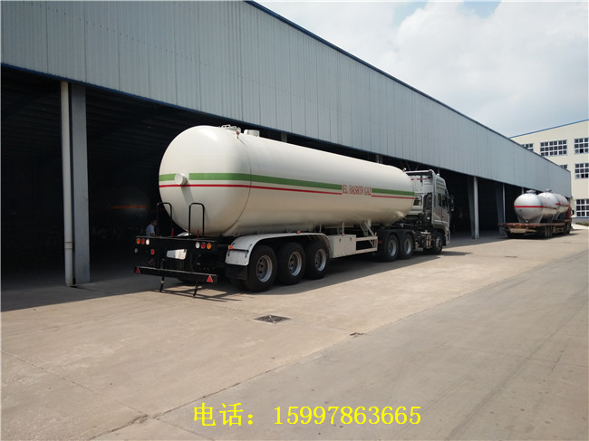 54立方LPG半掛車(chē)按照GB150-2011《壓力容器》設(shè)計(jì)制造,采用應(yīng)力分析方法設(shè)計(jì),使用Q345R材質(zhì)制作,罐體上設(shè)計(jì)有液位計(jì)、安全閥、溫度計(jì)、壓力表等安全附件,罐體內(nèi)部還設(shè)有防浪板。