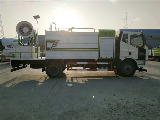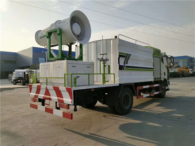 上裝:前沖、后灑(主管道均采用氣動閥駕駛室自動操作控制)、側噴、高炮、加大工作平臺,前置卷簾門消音發電機倉,中置加大容量方型水箱,罐體滿載容積12立方(罐內采用環氧玻璃鱗片防腐處理質保兩年)、使用壽命更長,新型罐體、美觀大方,環保、免征齊全。