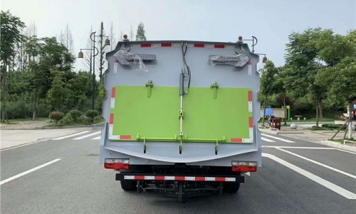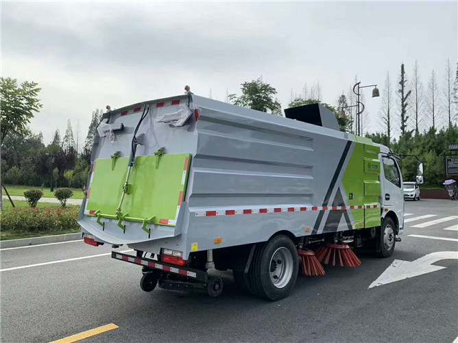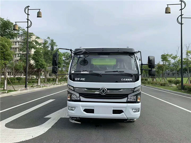 東風多利卡D7掃路車,2水/6塵,4個中置掃盤,帶3檔調速;江鈴87馬力增壓副發動機;大力馬達;施耐德控件開關;臺灣電磁閥組;免維護自分離式離合器;北玻臺信免維護風機;不銹鋼水箱;不銹鋼垃圾箱;尾部LED箭頭燈;手動泵應急系統;刷臂轉動機構使用高新耐磨工程隔套,免打黃油;精密冷彎無縫液壓油管。加裝氣動前沖后灑。