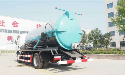 其它配置:配SK-12水循環泵,安裝防溢閥,帶濾網三通,尾部液壓開起,帶鎖緊裝置。尾部1個150球閥,副駕一側帶側抽,副駕一側罐體安裝視污管。