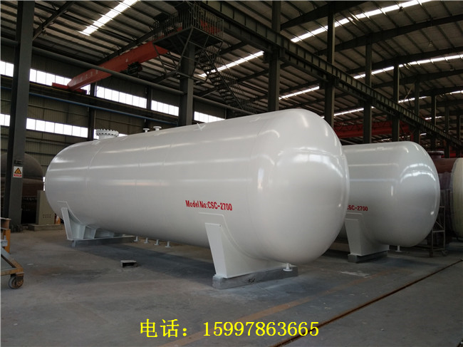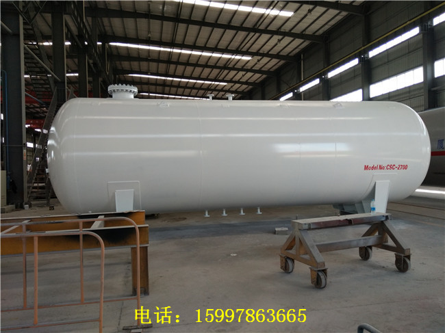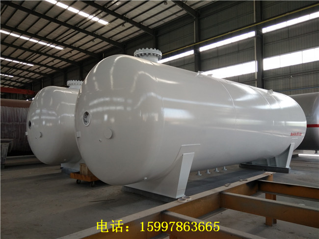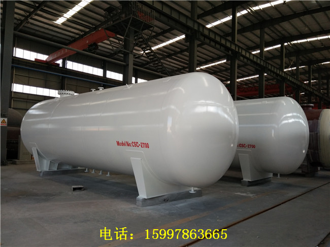 48立方液化氣儲罐設(shè)計壓力為1.77MPa,設(shè)計直徑為2700毫米,筒體厚度為14毫米,封頭為16毫米,我公司可根據(jù)要求提供安全附件如壓力表、溫度計、液位計、截止閥等。