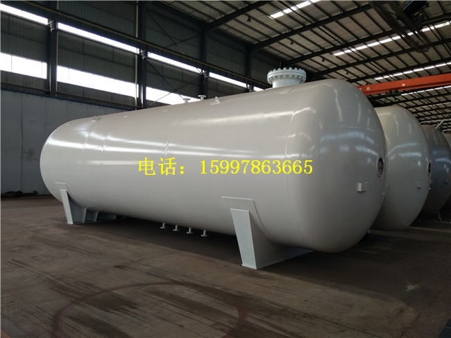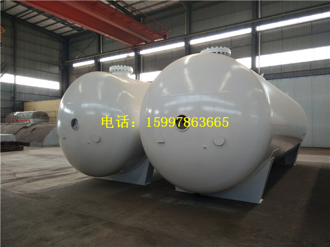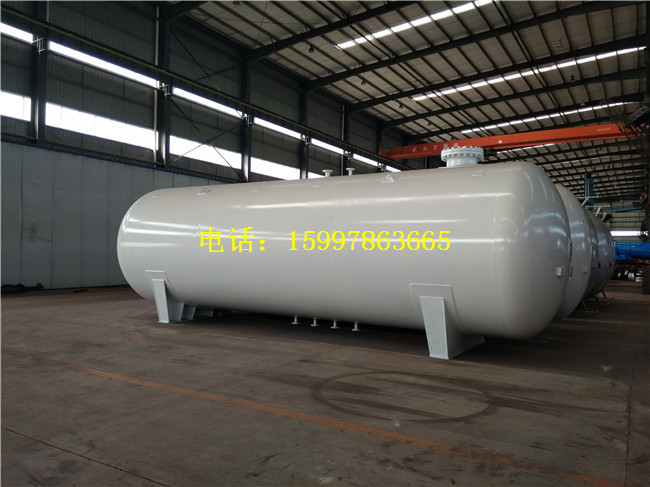 63立方液化氣儲罐設計壓力為1.77MPa,采用雙橢封頭制作,設計直徑為2700毫米,筒體厚度為14毫米,封頭為16毫米,設計使用壽命為20年。