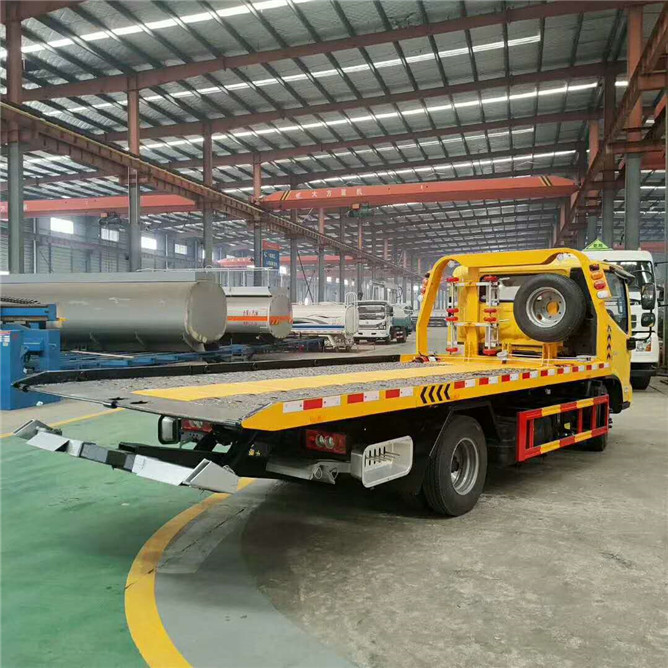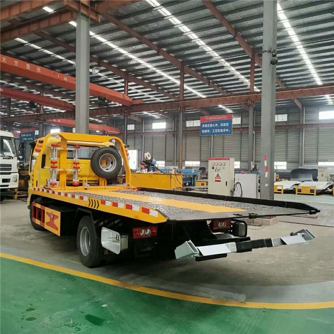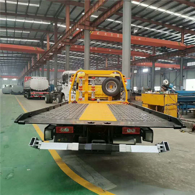 上裝:三噸平板,四噸液壓絞盤,板長5.3米,油缸,多路閥,絞盤,20m鋼絲繩,輔助輪小車2個,綁帶4根,拖叉1套,后托臂套筒1對,三角限位1對。