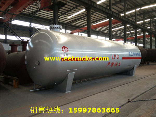 40立方液化氣儲罐設計壓力為1.77MPa,設計直徑為2400毫米,筒體厚度為14毫米,封頭為14毫米,設計使用壽命為20年,可以裝載16噸液化氣。
