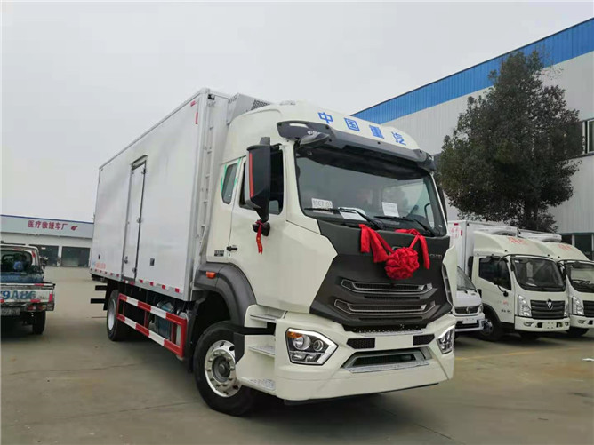 隨著年關將近,冷鏈運輸行業業務迎來旺季,各大物流公司均急需冷藏車從事相關配送業務。今天,我公司冷藏車車間旁,一輛嶄新的6.8米重汽豪瀚冷藏車在通過一系列的檢測后,準備發車。