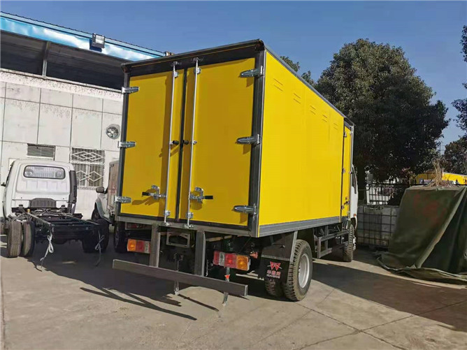近日,我公司廂式車生產分廠承接一輛氣瓶運輸車,出口至南非,此車為躍進品牌,廂體按照國個用戶要求噴成通體黃色,不僅醒目,且相當美觀。